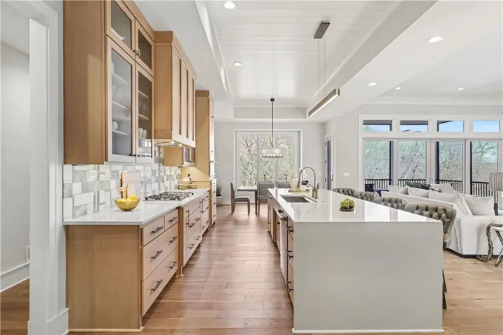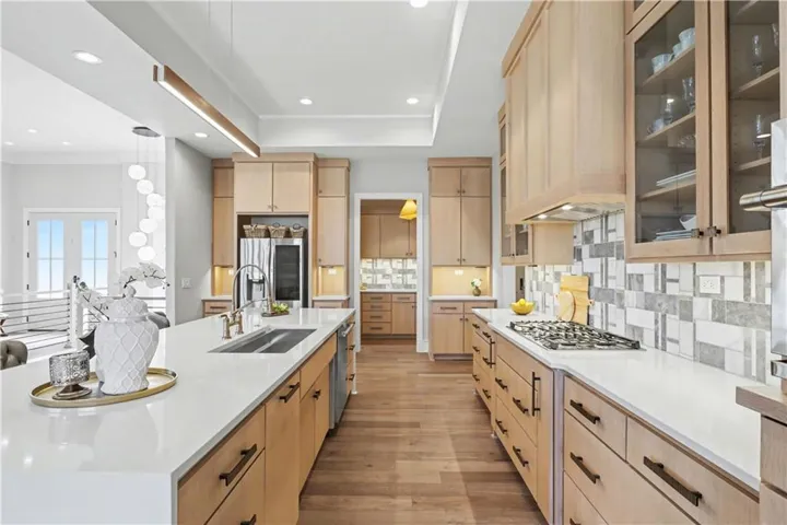 Step into this breathtaking custom-built 1.5 reverse floor plan where style, space, and sophistication come together seamlessly. Home was built by Homes by Chris. Just shy of 4,500 square feet, this exceptional home offers 4 bedrooms, 3.2 baths, a 3-car garage, and a coveted walk-out lower level. Stunning curb appeal welcomes you with beautifully manicured landscaping and a charming front porch, while the peaceful backdrop of mature woods and a protected stream creates a private, nature-filled retreat. Inside, an open-concept layout is flooded with natural light and showcases soaring ceilings, gorgeous light hardwood floors, and elegant finishes throughout. The show-stopping kitchen is a dream for entertaining, featuring an oversized island, abundant cabinetry, and a butler’s pantry complete with beverage center and extra prep space. Slide open the glass doors and step onto the fully screened-in porch, the perfect spot to unwind while overlooking the serene, tree-lined setting.\r\n