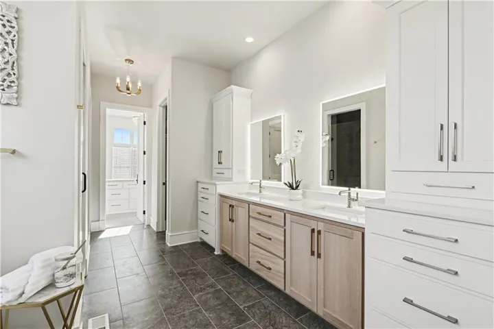 The main-floor primary suite is a true sanctuary, highlighted by a stunning statement wall and a spa-inspired bath with backlit mirrors, a luxurious soaking tub, and a jaw-dropping walk-in closet featuring custom built-ins, a center island, and a dedicated makeup vanity. A second main-level bedroom and full bath add flexibility and convenience. Downstairs, the finished walk-out lower level expands your living and entertaining space with two additional bedrooms, a spacious family room with a full wet bar, and an impressive workshop with sealed floors, motion-sensor lighting, and direct access to the backyard and a second covered screened porch. No detail was overlooked — from the epoxy-coated garage floor and upgraded interior lighting to enhanced landscaping and countless thoughtful touches. With approximately $83,000 in upgrades, this home shows like new, has been lightly lived in, and meticulously maintained. Why wait to build when you can have luxury, upgrades, and perfection ready now!