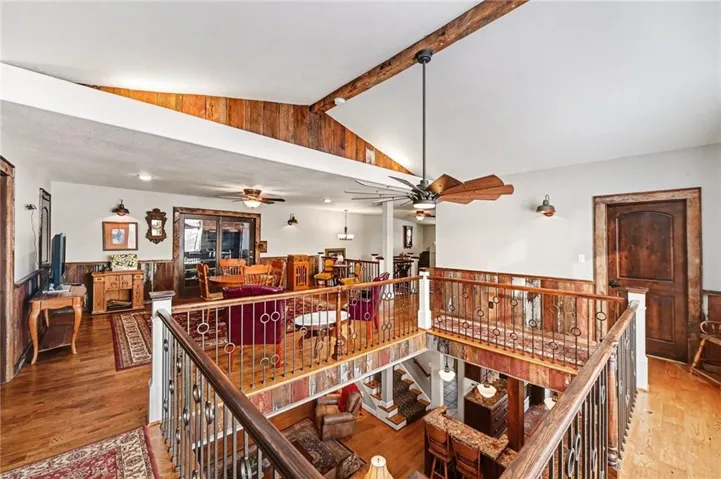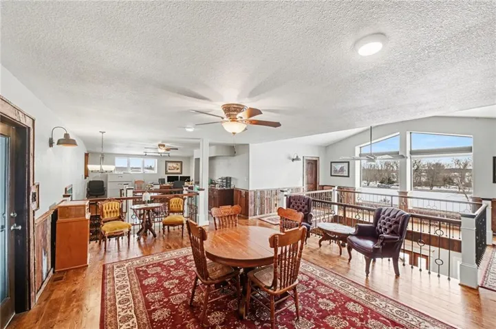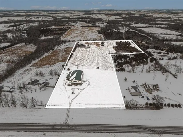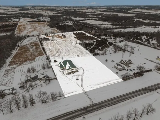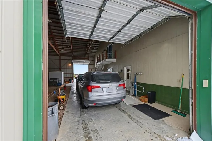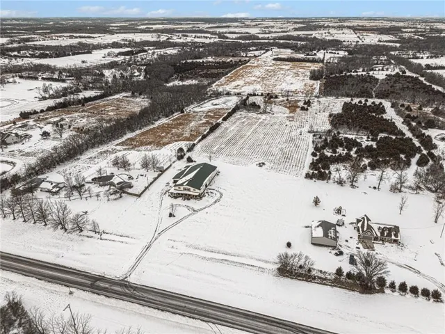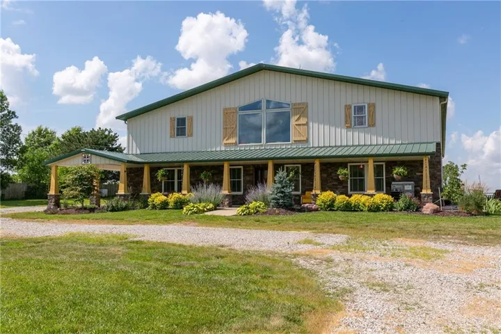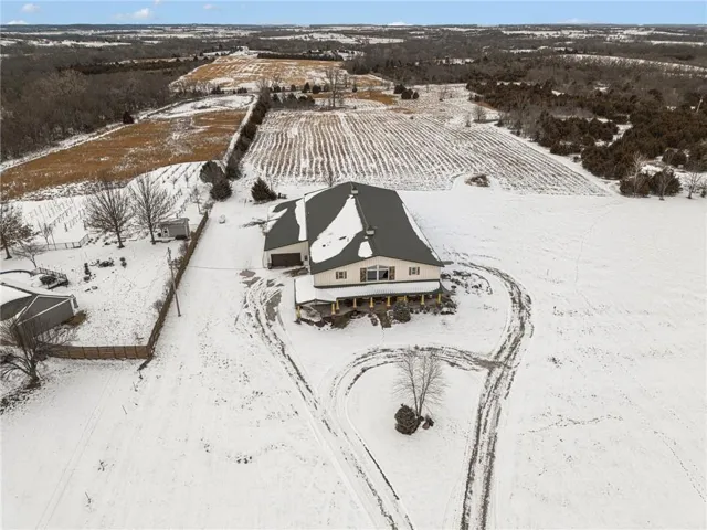 +"PublicRemarks": "Incredible BARNDOMINIMUM on 15 acres in rural Leavenworth County. Enjoy peaceful country living with convenient highway access in this stunning barn-style home that truly has it all. A large covered front porch welcomes you into approximately 3,500± square feet featuring an expansive open floor plan ideal for comfort and entertaining. Inside, you’ll find custom cabinetry, barn doors, hardwood floors, and tile surfaces throughout. The main-level primary suite was designed for long-term living and includes a zero-entry walk-in shower with heated floors. A built-in tornado shelter adds peace of mind, and abundant storage is available throughout the home. This versatile property also features a 60’ x 90’ horse arena and multiple garage and workshop spaces. In addition to the attached two-car garage, there is a bonus one-car garage/workshop and an additional 24’ x 20’ rear storage area, perfect for equipment, hobbies, or extra vehicles. This is a one-of-a-kind property that offers something for everyone. It’s the one you waited for!!"