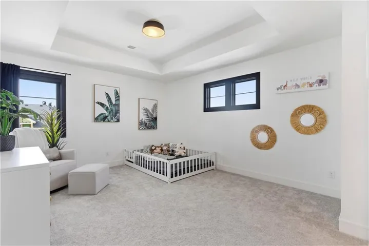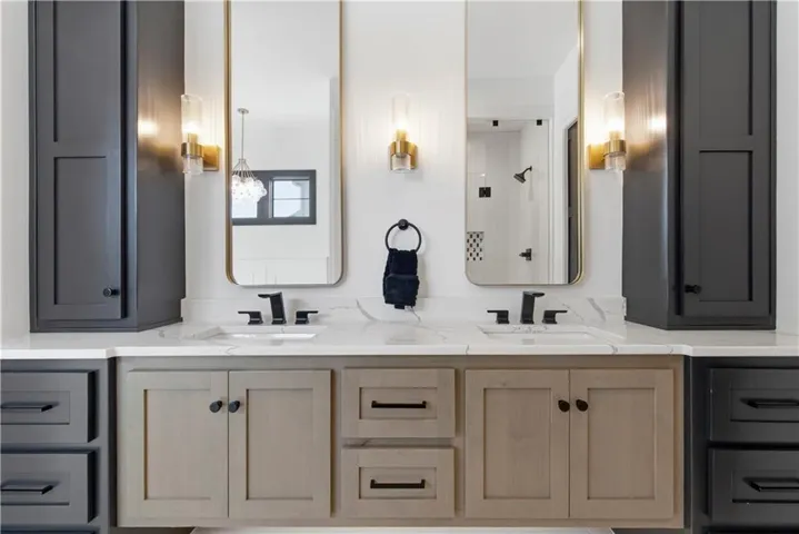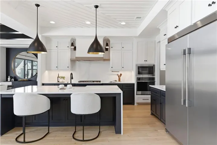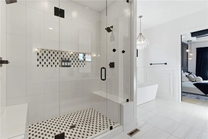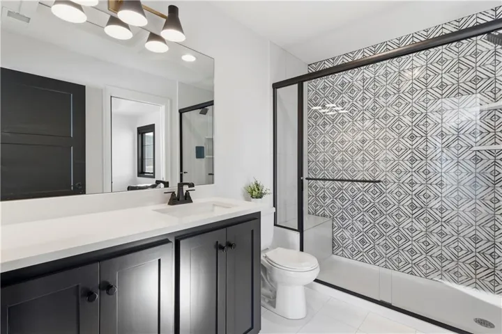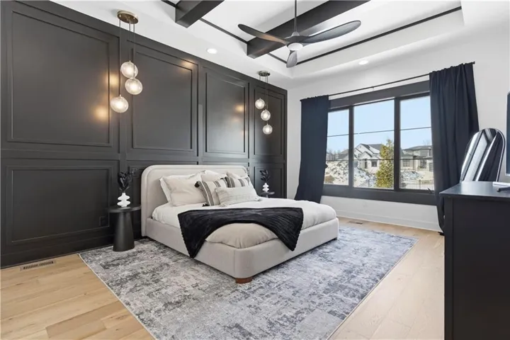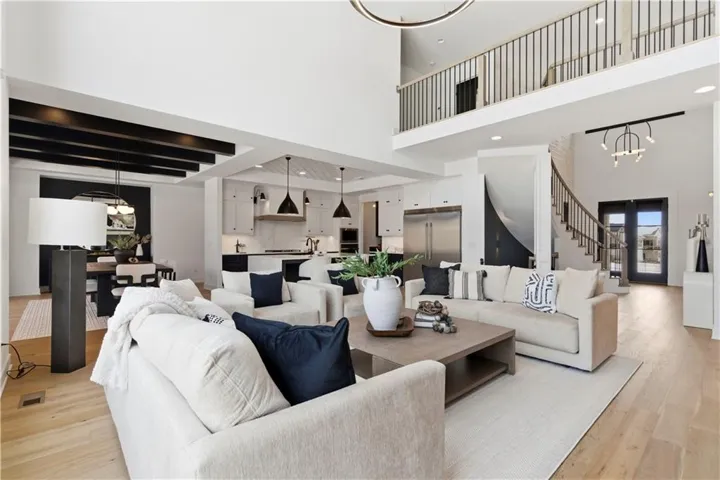 +"PublicRemarks": "Never before offered to the open market, this custom award-winning Maplewood III MODEL home by JFE is now available! Ideally located in Blue Valley Schools, this fully finished 1.5-story modern custom build delivers one of the most sought-after floorplans with every detail already complete. The main level features a private primary suite and a dramatic two-story great room with a curved staircase, stone feature wall, floor-to-ceiling tile fireplace, and an expansive wall of black-trim windows that fill the home with natural light, paired with remote-control motorized living room blinds! Designer lighting and custom ceiling details elevate the space throughout. The kitchen is anchored by a waterfall quartz island with coffered ceiling trim and wood beams, a prep station with walk-in pantry, professional-style appliances, and carefully selected cabinetry and finishes. The open layout flows naturally through a large double glass-sliding door to the screened-in porch with fireplace, creating a true indoor-outdoor living experience. The upper level offers a versatile loft ideal for an office or playroom, along with well-appointed secondary bedrooms and custom tile baths. The finished lower level adds a bedroom and full bath, providing flexible living space for guests or everyday use. Outside, the fully fenced backyard features two gated entrances plus a double-wide opening, while the garage includes epoxy flooring and a Tesla charger. A full security alarm system and all window treatments already installed complete a home where nothing has been left unfinished. Built by JFE Construction, the Maplewood III is known for its thoughtful layout, architectural detail, and quality craftsmanship — a rare opportunity to own a completed custom model home in a desirable Overland Park community. Century Farms offers a clubhouse with fitness center, reading loft, resort-style pool with slide and fire pit, pickleball courts, a play area, and a community garden. Don’t miss this one!"