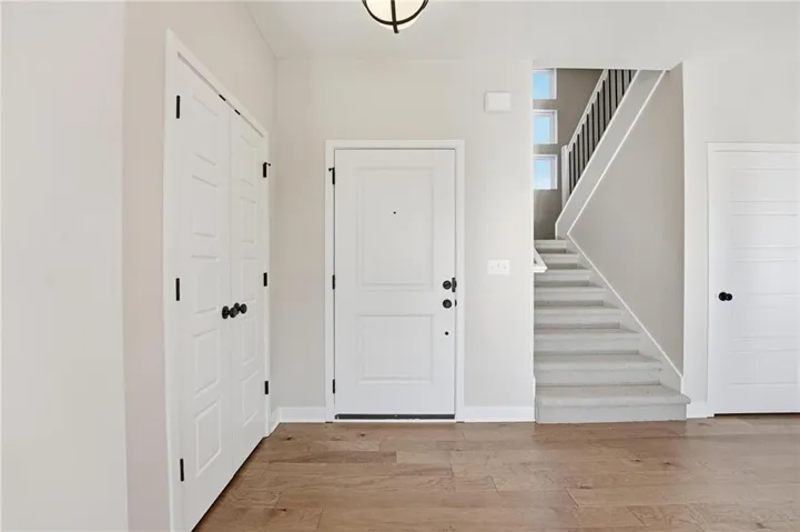 Our Marmalade home plan is a chic two-story design featuring 4 bedrooms and 2.5 bathrooms. The main level boasts an open floor plan with ample windows that fill the space with natural light. The kitchen, both functional and stylish, overlooks the spacious living and dining areas and includes a large walk-in pantry and a nearby half bath, perfect for entertaining. Upstairs, you'll find all four bedrooms, with the laundry room conveniently located just around the corner from the primary suite. The primary bath features a large shower, double sinks, and a generous walk-in closet.\r\n