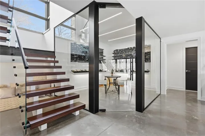 A dramatic arrival begins at the 8-foot double entry doors, handcrafted from exquisite Sapele wood—an immediate testament to the extraordinary craftsmanship found throughout. Inside, an open, light-filled floor plan highlights soaring lines, sophisticated finishes, and uninterrupted vistas that elevate every living and entertaining space. \r\n