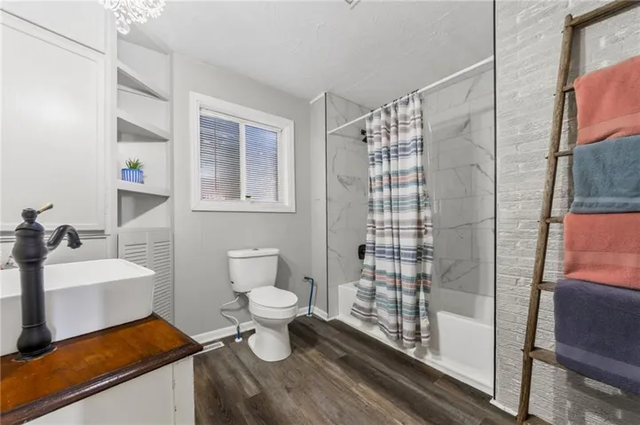Interior updates include fresh paint, new carpet, vinyl flooring, updated lighting, ceiling fans, and blinds throughout. The kitchen features quartz countertops, a new sink, and all appliances stay. A bonus flex room off the kitchen offers space for a home office, playroom, or man cave. Spacious bedrooms feature stylish barn-door closets, and spa-like bathrooms are refreshed with new vanities, fixtures, and a tiled shower/tub.\r\n