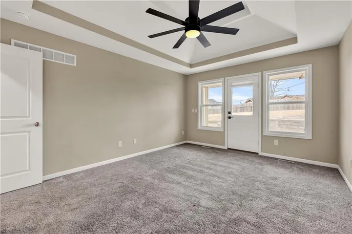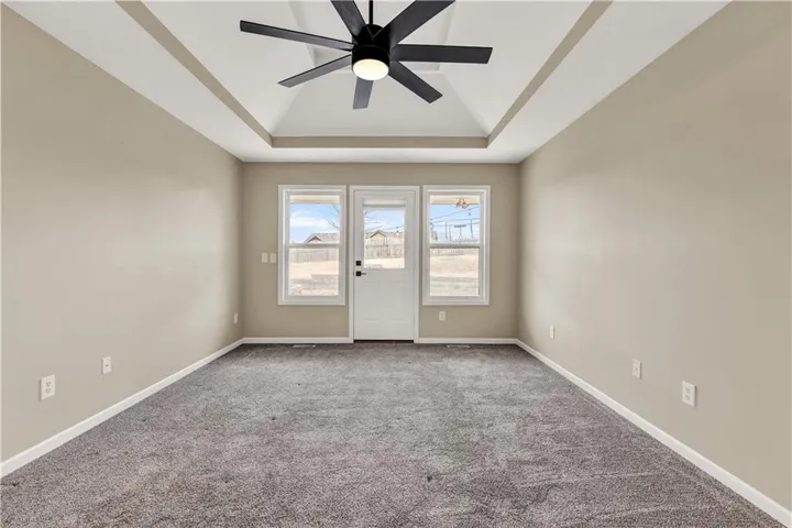 +"PublicRemarks": "Your new home for the New Year! This exquisite home was extensively remodeled just a couple of years ago. Nestled in a cul-de-sac in the desirable Deerfield subdivision, just a short distance to shopping and restaurants downtown and a 15-minute commute to Whiteman AFB. Coming up the extra wide entry staircase leads to soaring ceilings in the spacious Living Room with a cozy gas fireplace for the chilly days. The breakfast area connects to the stunning Kitchen with gorgeous stone countertops, tile backsplash, stainless steel appliances and a pantry. The dedicated Dining Room is directly nearby. The Primary Bedroom Suite is on one side of the home with direct access out to the back yard patio and a large on-suite Bathroom with vaulted ceilings, double sink vanity, jetted tub, separate tiled shower, and generous walk-in closet. The secondary Bedrooms and Bathroom are on the opposite side of the home. Head to the lower level to the Family Room/flex space with another full Bathroom. The fenced back yard is quite wide with a landscaped patio, fire pit and grill station for relaxation, hosting, and kids/pets to play safely. This is also within walking distance to the Hidden Pines Country Club; join as a member for all access to the golf course and pool! The neighborhood HOA frequently hosts community events, food trucks, and socials. Home is where memories are made...start making new ones in your beautiful home and neighborhood!"