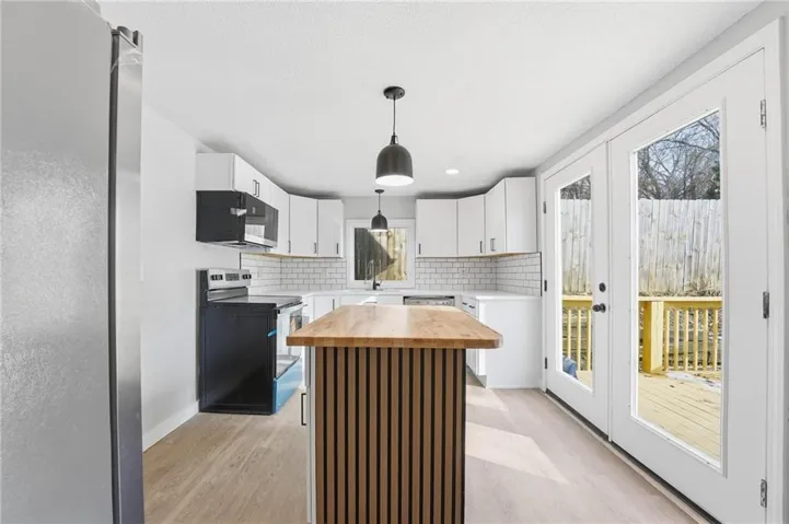 The kitchen has been fully renovated with new cabinetry, sleek countertops, updated lighting, and a standout island with a butcher block top. A full appliance package and an easy flow into the dining area make it ideal for everyday living and entertaining.\r\n