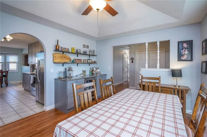 +"PublicRemarks": "Set on a beautiful 3-acre parcel, this 3-bedroom, 3-bath home blends comfort, space, and timeless style. Durable metal siding and a newer roof provide peace of mind, while the remodeled kitchen shines with modern updates and thoughtful design. Hardwood floors run throughout the main level, adding warmth and continuity to the living spaces. A cozy fireplace anchors the living room, formal dining room featuring a convenient beverage station. Additional highlights include central vacuum, 28'x46' out building, partially finished basement. Kearney schools with easy access to highway. This property offers room to breathe, indoors and out."