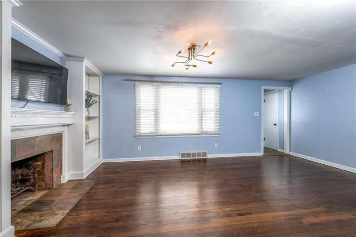 Hard-to-find Prairie Village ranch with 4 bedrooms on the main level! This home offers 4 bedrooms, 3 full bathrooms, approximately 2,255 sq ft of living space, and a partially finished basement for added flexibility. The main level features gorgeous hardwood floors throughout, including all bedrooms, and a spacious living room with a fireplace and built-in shelving that flows into the formal dining room with crown molding and hardwood flooring. The updated kitchen shines with newer cabinetry, quartz countertops, tile backsplash, and stainless steel appliances — all of which stay with the home.\r\n