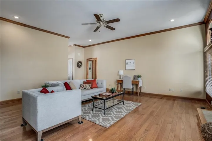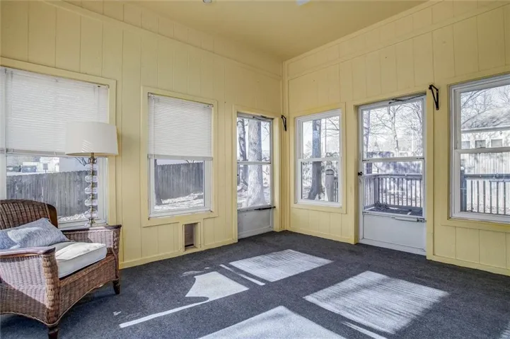 +"PublicRemarks": "This charming brick front ranch welcomes you with timeless curb appeal, a covered front porch, and a gently elevated lot with a retaining wall that adds character and presence. Inside, the home opens to a spacious living room highlighted by hardwood floors, crown molding, arched windows, and a cozy fireplace that anchors the space beautifully. Natural light pours in throughout, creating a bright and comfortable feel. The layout offers easy main-level living with well-sized bedrooms, neutral finishes, and thoughtful details throughout. A sun-filled porch provides the perfect bonus space for relaxing, reading, or enjoying views of the backyard year-round. The laundry room is conveniently located and features ample cabinetry and workspace. Out back, enjoy a fenced yard with mature trees and a deck ideal for entertaining or quiet evenings outdoors. The oversized two-car garage offers generous storage and functionality. Well maintained and move-in ready, this home blends classic style with everyday comfort in a setting you’ll love coming home to."