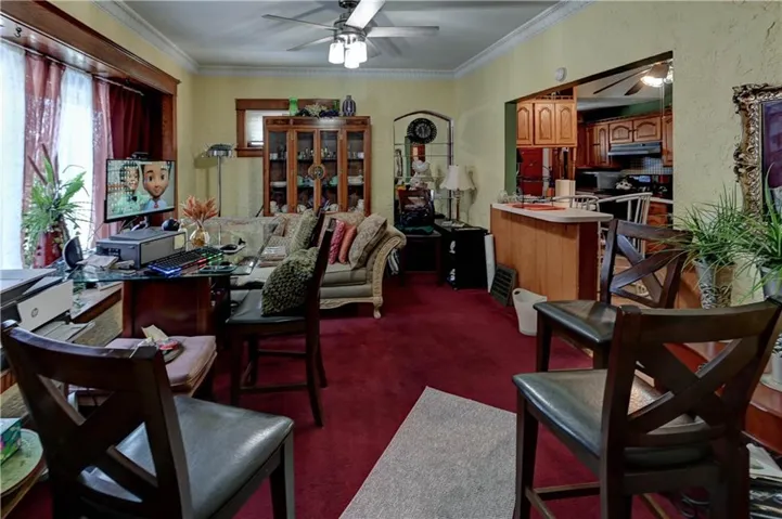 +"PublicRemarks": "Well, maintained 3 story - solid home with so many updates!! 3 bedroom 2-1/2 baths with possibilities of 2 additional bedrooms on third level. Basement partially finished with full bath! Screened in front porch and deck off kitchen. Tax abatement through 2032. Updated Kitchen. New roof 2017, gutters 2021, HVAC replaced 2023. New panel box in 2020 All new windows, 2020 and new garage door 2021. Two car 24 x 24 detached garage. location just minutes from downtown, the Crossroads, Liberty Memorial, and major highways—putting dining, arts, entertainment, and commuting within easy reach. WELCOME HOME -- Don't miss out on this one!!"