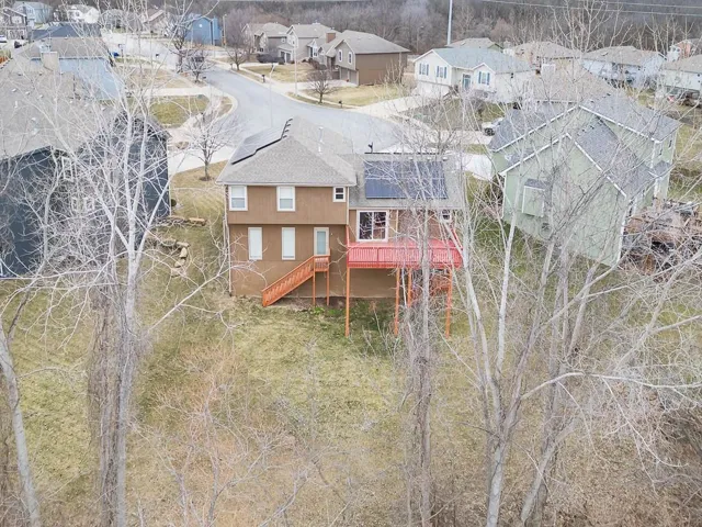 Welcome to this wonderfully designed, spacious 4-bedroom, 3-bathroom home in the highly sought-after Fairfield subdivision, in Clay County. Freshly painted inside, this home blends timeless character with modern updates. Gleaming hardwood floors and ceramic run throughout, creating a warm and inviting atmosphere. The main level offers a bright and spacious living room, a dining room and a large family room with heated floors and a beautiful gas fireplace that is perfect for gatherings and cozy evenings. The kitchen is designed with beautiful granite counters with a combined kitchen and dining room that opens out to the spacious deck with gorgeous views, perfect for entertaining and enjoying beautiful sunrises each day. Upstairs you'll find generously sized bedrooms and updated baths to accommodate family and guests. The primary bedroom has a walk-in closet along with a bathroom with granite double vanity and wonderful feature of this bathroom is that is has a steam shower. Step outside and enjoy the beautiful, treed view, and a roof that features 28 Micro converter Astrawat solar panels, to help you to lower your electric bills. Additionally this home is equipped with a french drain type system for maximum protection of the homes foundation during our heavy rainfalls here in Missouri. \r\n