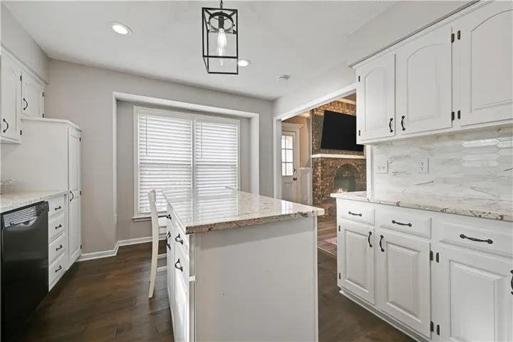 +"PublicRemarks": "Welcome home to this beautifully maintained Shawnee residence offering space, style, and room to grow. The home features a large two-car garage and an unfinished basement, providing excellent potential for future expansion or additional living space. The heart of the home is the thoughtfully updated kitchen, showcasing granite countertops, stainless steel appliances, white cabinetry with abundant storage, a marble mosaic backsplash, updated lighting, and an island with seating—perfect for everyday living and entertaining. The adjoining dining room features a modern, updated light fixture that complements the kitchen’s timeless style. Two distinct living areas offer flexibility and function: a formal sitting room at the front of the home and a spacious family room at the back, complete with a gas fireplace, elegant trim details, and built-in cabinetry, all seamlessly connected to the kitchen. The fully fenced backyard is ideal for relaxing or entertaining, featuring low-maintenance landscaping, a level driveway, a large deck, and mature trees that provide beauty and shade. On the main level, the secondary bedrooms offer generously sized closets, while the hallway bathroom has been refreshed with a new quartz countertop and faucet. The primary suite is a true retreat, featuring updated flooring, two closets, a ceiling fan, and a vaulted tray ceiling, along with a private full bathroom updated with a quartz countertop and new faucet. Well cared for, move-in ready, and located in highly regarded schools, this home offers comfort, functionality, and future potential—all waiting for its next owner."