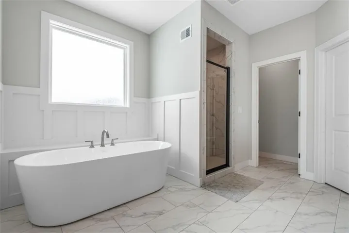 The Primary Suite is a true retreat with vaulted ceilings, a luxurious stand-alone soaker tub, separate tiled shower with dual shower heads, two vanities, and again TWO walk-in closets. The main-floor laundry offers convenient direct access from the primary closet. \r\n
