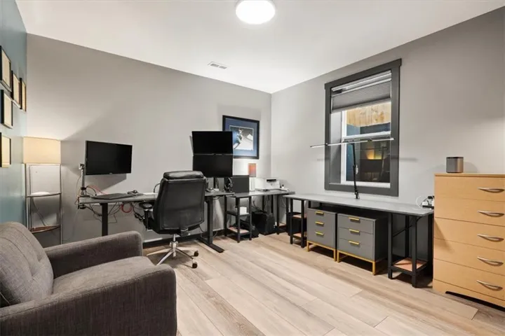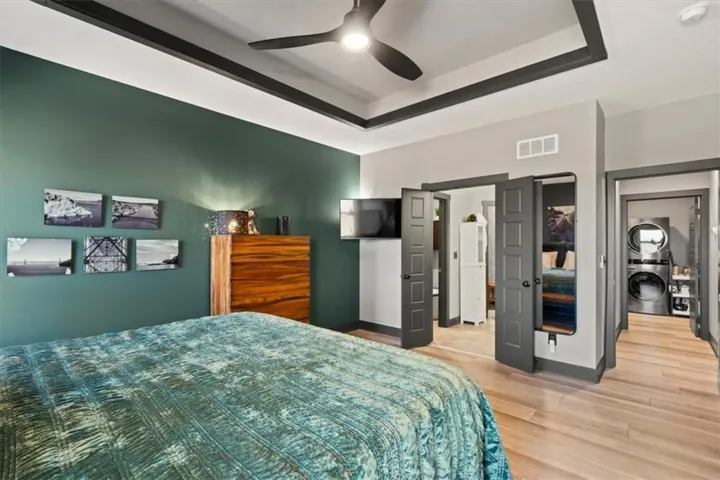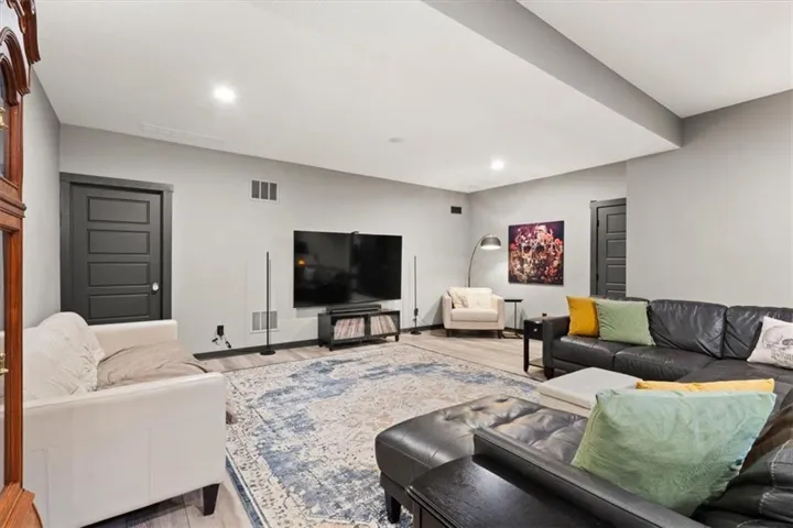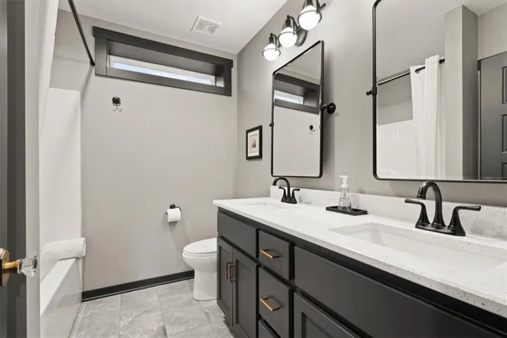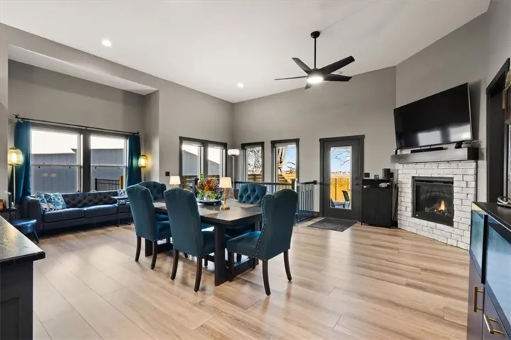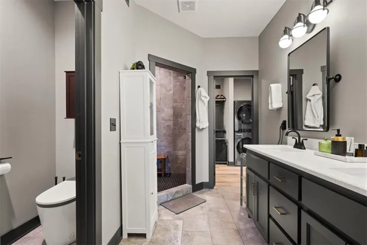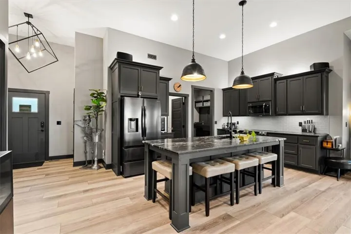 +"PublicRemarks": "Nearly $52,000 in Upgrades! Step into a home that feels like a work of art. Thoughtfully designed and meticulously upgraded, this stunning reverse 1.5-story home greets you with 12 ft ceilings and windows looking out to nothing but serenity. Interior upgrades include a Culligan filtered water and reverse osmosis system plumbed to the kitchen sink and refrigerator, dual 50-gallon water heaters installed in parallel, two laundry hookups (primary closet and basement), and a whole-house water softener with exterior hose bibs bypassed. Smart solar-powered blinds on picture windows pair with top-down/bottom-up cellular shades in all bedrooms. The home features upgraded LVP flooring throughout living areas and bedrooms (except the upstairs guest), upgraded guest bath tile, matte black fixtures and hardware, glass doorknobs, and luxury stone surfaces including Titanium Brushed granite on the island, Midnight Corvo quartz on the kitchen perimeter, and Sparkling White counters with larger square sinks in all bathrooms. The custom oversized primary shower offers dual heads and controls. Exterior enhancements include a cedar privacy fence with horizontal design and view slats, dual side gates, and a professionally landscaped backyard with an expansive Missouri-stone patio, low-maintenance lawn, annual plantings, a storage shed on a concrete pad, a full drainage system, and a Hunter three-zone underground sprinkler system with app-enabled control. West-facing patio sun shades add comfort for relaxing on warm days. The finished basement adds two bedrooms, a full bath, a spacious entertaining room perfect for movie nights, and plenty of storage space. The sellers have loved the charm of Gardner, meeting friends for coffee downtown, friendly neighbors, and the privacy of a backyard oasis looking out to complete serenity with wildlife and the simple beauty of nature. Schedule your showing today! Most furnishings are negotiable."