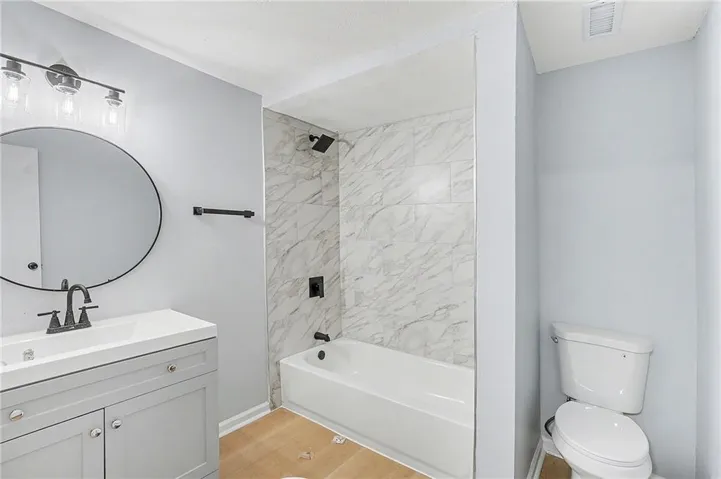 Spacious bedrooms provide flexibility for guests, home office, or additional living space. Three updated bathrooms feature contemporary fixtures and clean, modern finishes. Lower level offers additional finished space with a bedroom and bathroom—ideal for guests or multi-generational living.\r\n