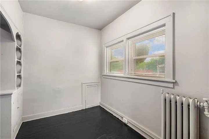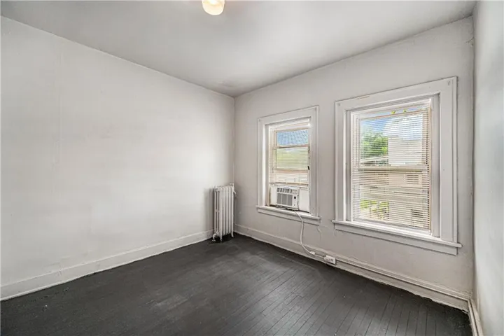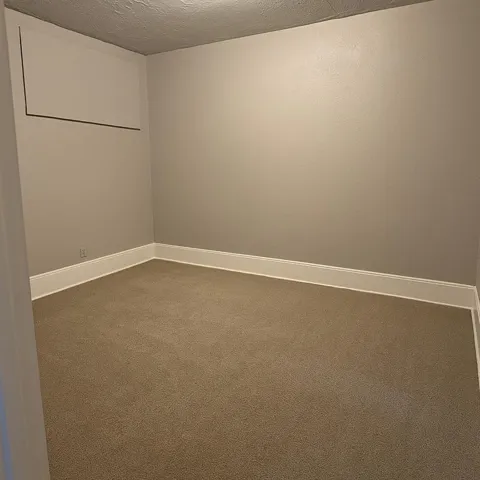 "LongDescription" => "Unfurnished room featuring a textured wall, dark wood finished floors, a textured ceiling, brick wall, and a ceiling fan"