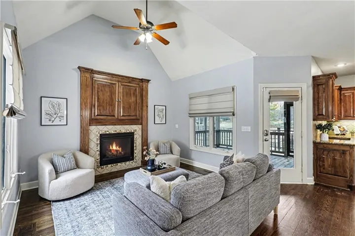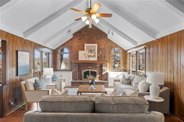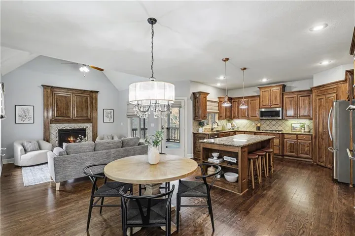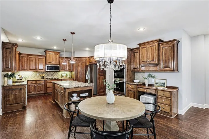 +"PublicRemarks": "Welcome home to this spacious and welcoming 2-story family home located in the highly sought-after Nottingham at Heritage Park neighborhood! Offering 5 bedrooms, 4.1 baths, a 3-car garage, and just shy of 4,500 square feet. From the moment you step inside, you’ll be greeted by soaring ceilings, a semi-open floor plan, and generous living spaces. The main level features a home office, formal dining room, living room, laundry room, half bath, and a spacious kitchen that opens to the eat-in area and cozy hearth room. With two fireplaces and hardwood floors throughout the main level, the home feels inviting year-round. Step outside to enjoy a screened-in porch, which leads to a large patio with a fire pit and a fully fenced backyard. The kitchen is built for busy households, featuring a new gas custom cooktop, double ovens, granite countertops, center island, and walk-in pantry. The living room impresses with a fireplace and floor-to-ceiling windows. The private office offers custom built-ins, vaulted ceilings, and double glass doors—perfect for working from home. Upstairs, the expansive primary suite serves as a relaxing retreat with a fireplace, spacious bath, double vanity, separate tub and shower, and a massive walk-in closet. Three additional bedrooms and two full baths—each with walk-in closets. The finished lower level adds even more living space with wet bar, fifth bedroom, and fourth full bath. Recent updates include new interior paint throughout, new carpet on stairs and second level, a new furnace, security system, and more. This home is truly move-in ready, with the opportunity to add your own personal touches. Located in the award-winning Blue Valley School District, this community offers walking paths to neighborhood parks and Heritage Park, plus a neighborhood pool and year-round family activities through the HOA. With close proximity to shopping, hospitals, restaurants, a new sports complex, and major conveniences, this location is hard to beat."