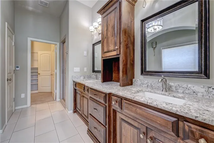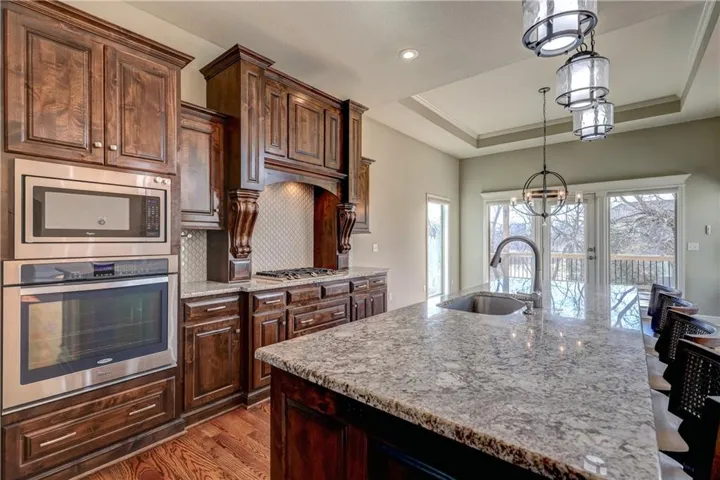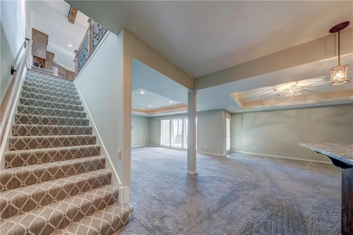 +"PublicRemarks": "Great value on this beautiful reverse 1.5-story home situated on a scenic lot. The Great Room showcases a stacked-stone fireplace, beamed ceiling, and an open flow into the gourmet kitchen—ideal for everyday living and entertaining. The kitchen features a large island, walk-in pantry, Dacor gas cooktop, beverage fridge and stainless steel appliances. The dining area opens to a covered deck, perfect for relaxing or summer grilling. The primary suite offers a private retreat with plantation shutters, deck access, and a spa-inspired bath complete with a RARE STEAM SHOWER, whirlpool tub, heated tile floors, and a spacious walk-in closet. A second main-level bedroom includes a hard to find private, en-suite bath and walk-in closet, along with a public half bath. The finished walkout/walkup lower level is filled with natural light and features a stylish wet bar and dining area, plus two additional bedrooms with walk-in closets and a shared bath with separate vanities. The fully fenced yard includes custom 5-foot black metal fencing and sprinkler system. Neighborhood amenities include a splash pad, sport court and walking trails. Convenient location close to parks, bike trails, shopping, restaurants, with easy access to major highways."