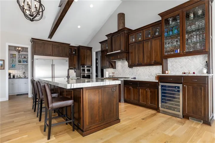 This stunning home blends luxury, comfort, and thoughtful design throughout. Rich hardwood floors anchor the main level, complemented by dramatic scissor-beam vaulted ceilings that create an open, airy feel. The heart of the home flows seamlessly to the covered deck, where a striking see-through fireplace sets the stage for year-round enjoyment and effortless entertaining.\r\n