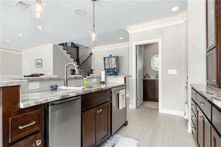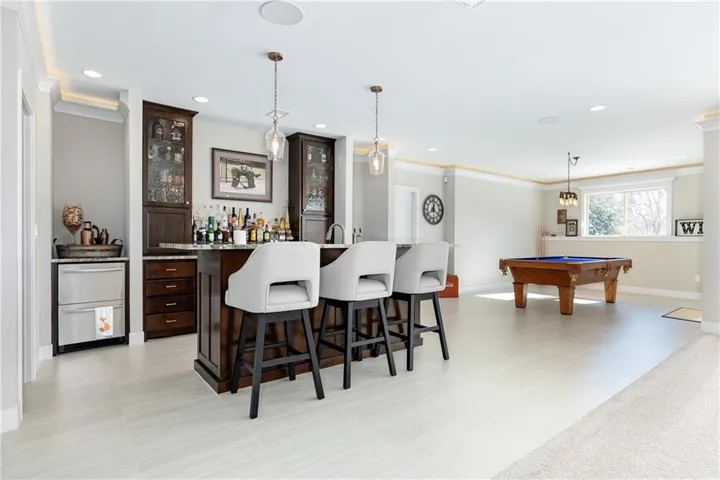 Downstairs, the finished lower level impresses with a wet bar ideal for gatherings, movie nights, or game days. Additional highlights include a well-appointed laundry room with utility sink and an exceptional garage featuring epoxy floors and custom cabinetry—clean, organized, and built to impress.\r\n