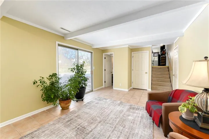 +"PublicRemarks": "You have to stop by and see this adorable 4-bed, 2.5-bath side-by-side split—it's the ideal starter home in a quiet cul-de-sac! The spacious living room features newer carpet and lots of natural light beaming in through the front windows. The bright white kitchen offers plenty of cabinets, a glass-top range for easy cleanup, and a peninsula island that provides extra space for food prep or casual seating for that quick bite. Fridge stays! The dining room walks out to newly built stairs and a patio. The fully privacy-fenced yard is perfect for grilling, relaxing, or letting your fur babies roam and play! Freshly Painted interior! The primary bedroom boasts fresh paint, his-and-her closets, vaulted ceilings, and a private en-suite bathroom. Oversized secondary bedrooms share a full, updated bathroom with a shower-over-tub combo. The dormer bedroom on the top level is a true 4th bedroom, complete with vaulted ceilings and a closet. The lower level walks out to the backyard from the second living room, equipped with a cozy gas log fireplace, brick hearth, and built-in shelving on either side. There's plenty of room for storage in the massive subbasement. The level driveway is perfect for shooting hoops too! Washer, dryer, and fridge all stay!"