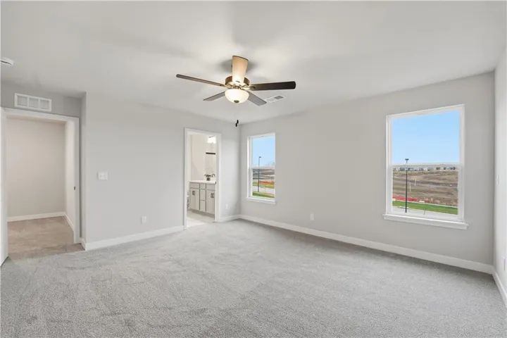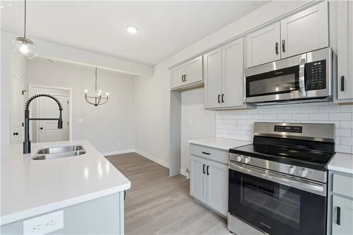 From the moment you arrive, the dimensional front elevation makes a striking impression. Inside, you'll find a spacious, open-concept layout featuring custom-built cabinetry, quartz countertops, a walk-in pantry, and an oversized island—ideal for daily routines and effortless entertaining. The kitchen flows seamlessly into the great room, where a floor-to-ceiling tiled fireplace serves as a stunning focal point. A walkout deck extends your living space outdoors—perfect for relaxed evenings or weekend gatherings. Upgraded trim and designer-selected finishes throughout the home add depth, detail, and polish to every space. The main-level primary suite offers a quiet retreat with a spa-inspired bathroom, freestanding soaker tub, and dual vanities. There's an office on the main floor for added convenience. Upstairs, a loft anchors three additional bedrooms—each with bath access—offering privacy and versatility for family or guests. Cadence residents enjoy access to a range of neighborhood amenities, including a community pool, winding walking trails, and nearby Platte Purchase Park. Located in the award-winning North Kansas City School District and within Staley High School boundaries, this home delivers an ideal combination of style, location, and livability. Taxes & square footage are approximate. Professional photos coming soon!