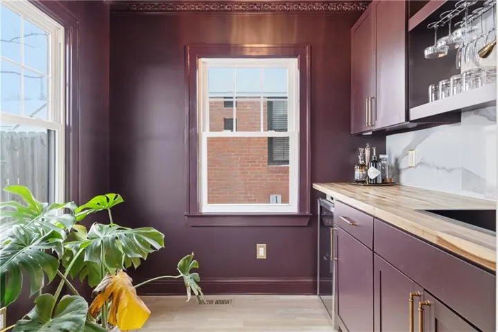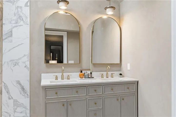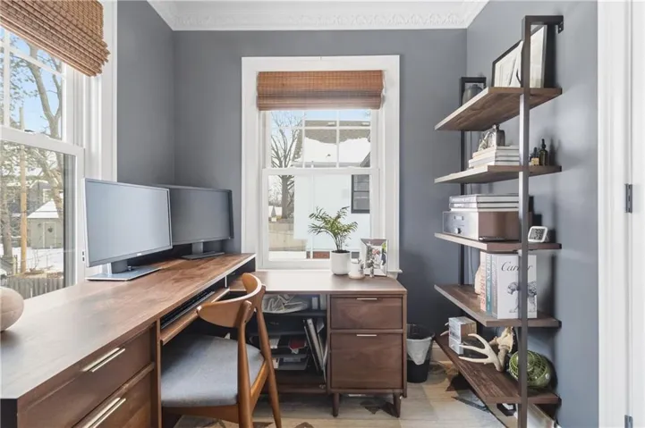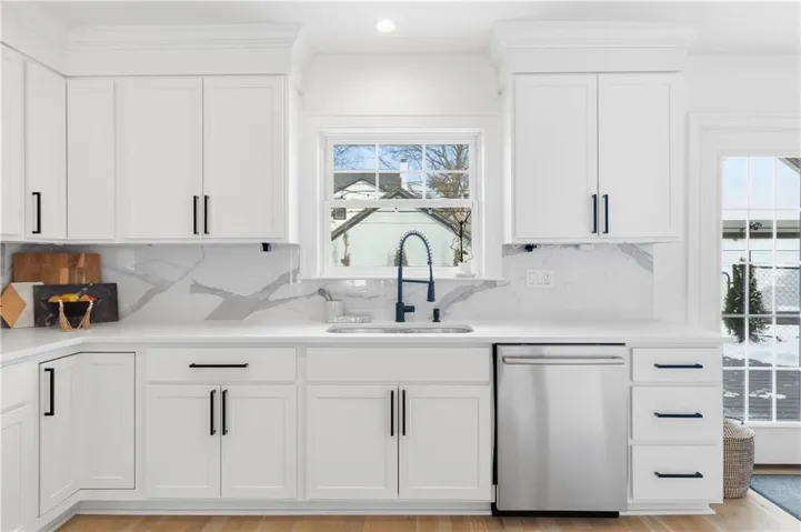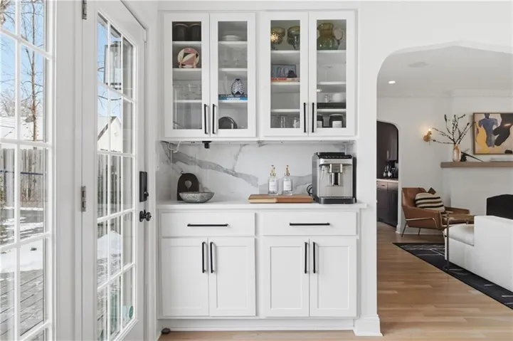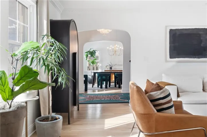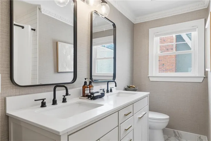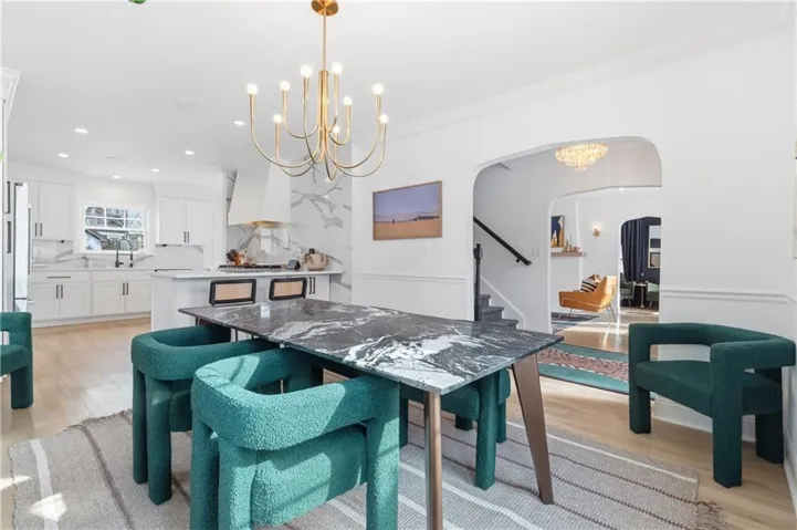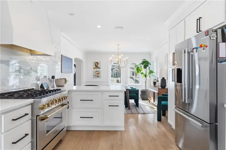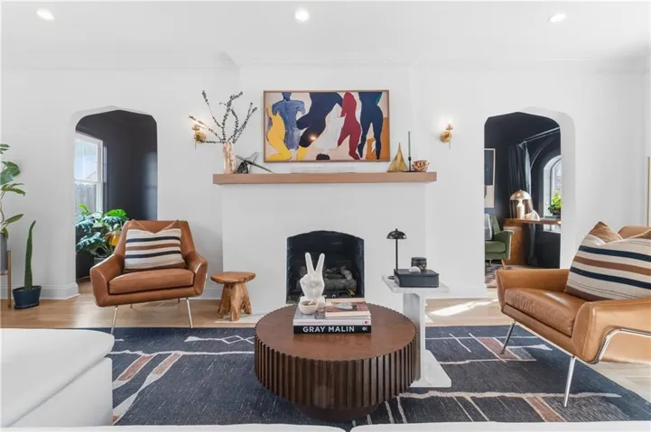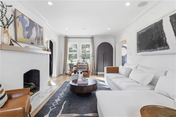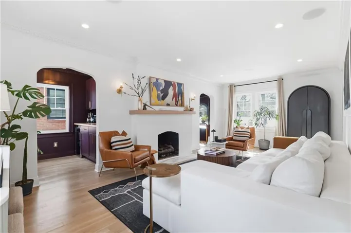A ROMANELLI GARDEN REBORN taken to the studs in 2022 and rebuilt with over $325K in curated upgrades. Every detail was addressed — from all-new double-paned windows, insulation, electrical, and plumbing, to the replacement of all original plaster with new drywall and the installation of genuine white oak hardwood floors throughout. Custom woodwork and crown mouldings were recreated to honor the home’s original craftsmanship, blending historic 1930's character with crisp, modern execution. Enter to an open concept dining room and chef’s kitchen complete with a ZLine 36" range, Bosch appliances and built in coffee bar. The spacious living room with gas fireplace is flanked by a library with custom built shelving and a wet bar with wine fridge. Wired audio throughout the first floor living and back deck round out this entertainers dream. Upstairs, the primary suite is anchored by a vaulted spa bath with heated floors, dual showers, double vanity, and skylight. Two additional bedrooms, additional full bath with double vanity plus a flexible bonus space complete the level, with a full stair to an expandable attic. Outside, every big-ticket item shines—new roof, gutters, windows, driveway, expanded deck—plus structural reinforcement and fresh landscaping for long-term confidence. A TURNKEY, DESIGN FORWARD CLASSIC\r\n