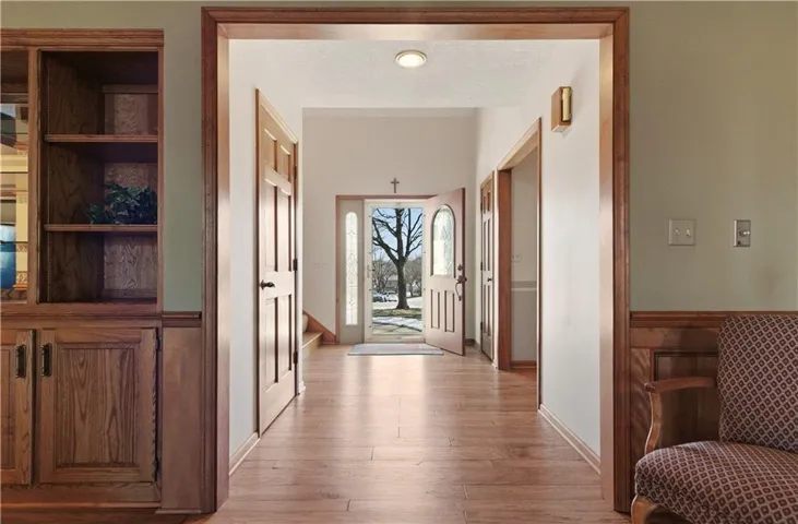 +"PublicRemarks": "Discover this stunning custom-built home in the sought-after Esquire Estates of Warrensburg, Missouri. Featuring over 4,200 square feet of meticulously maintained living space, this 5-bedroom, 3-full and 2-half bath gem is perfectly situated on a gorgeous half-acre lot at the end of a quiet cul-de-sac. The main floor offers two spacious bedrooms, while the second floor provides three additional bedrooms and a versatile loft area. Storage is a hallmark of this residence, with an impressive abundance of oversized walk-in closets and deep storage spaces throughout every level. The walkout basement is designed for both relaxation and utility, featuring a cozy fireplace, a convenient kitchenette, and a dedicated workshop. Unique to this property is the expansive John Deere room with direct outdoor access, providing the perfect space for lawn equipment or specialized hobby storage. Outdoor living is elevated by the premium composite decking, where you can enjoy the privacy and shade of beautiful mature trees. Additional highlights include an oversized two-car garage with professionally epoxied floors for a clean, durable finish. Combining scale, comfort, and unmatched functionality, this home is a rare find that perfectly balances luxury with everyday practicality."