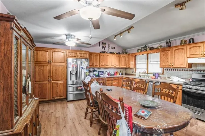 +"PublicRemarks": "This property offers tons of potential on just over 13 acres, providing the perfect setting to enjoy nature and country living while still being close to the city. Conveniently located just off F Highway, the property is situated in unincorporated Jackson County, offering privacy and flexibility. The home features a large eat-in kitchen with abundant cabinetry, slide-out shelves, and all appliances staying. An additional area allows space for a formal dining room, while the spacious and inviting living room includes a sunroom off the front—ideal for natural light and plant lovers- features a walk-in soaker tub too. The main level offers a primary bedroom, a generously sized bathroom with plenty of room to get ready. Upstairs provides flexibility with space to create two additional rooms. Outside, you’ll find a detached garage already set up for separate living quarters with a kitchen area & full bathroom. Large upper-level deck to enjoy the beauty that surrounds you. A charming old barn adds to the country appeal, along with an additional structure that could serve as a private workspace or extra bedroom. A horseshoe area near the drive makes entertaining easy. With some repairs and vision, this property could truly shine."