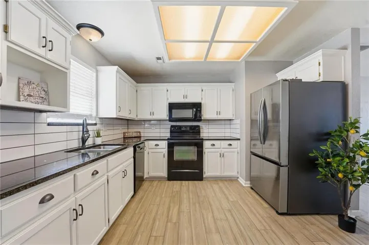 +"PublicRemarks": "Come see this adorable three-bedroom, one bath home on a triple sized corner lot! The kitchen and bathroom have nice updates including granite countertops in the kitchen. Backyard is fenced with a firepit and storage shed. There's a carport to protect your cars along with ample parking. The roof is only four years old. Refrigerator stays!"
