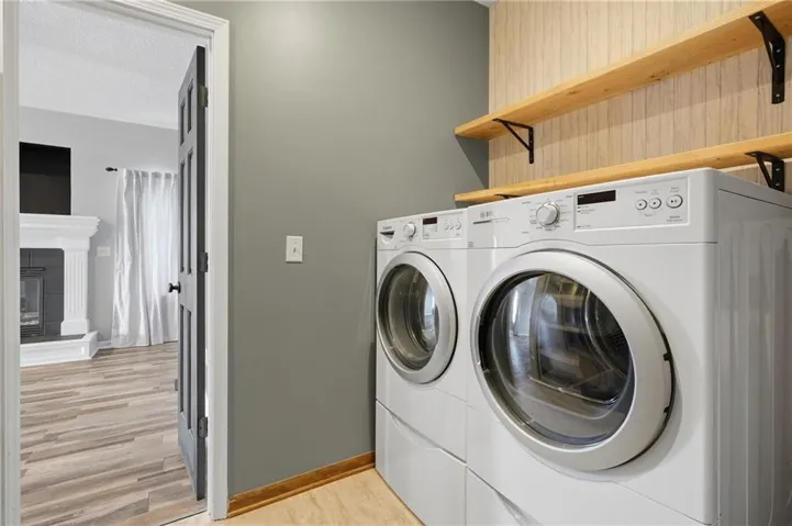 The primary suite, also located on the main level, is a true retreat with a fireplace, private deck, walk-in closet, attached laundry, and a double-door entry to the bathroom with double sinks, soaking tub, and tiled walk-in shower.\r\n