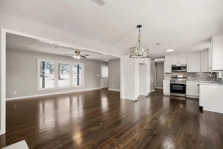 +"PublicRemarks": "Welcome to this beautifully renovated 3-bedroom, 2.5-bathroom RANCH home on a sprawling 3-acre property with captivating lake views. The bright, opened-up floor plan features stunning refinished hardwood floors throughout the main level. The dining room's newly refaced faux stone fireplace is visible from all main living areas. The brand new kitchen boasts granite countertops, stainless steel appliances, 42" wall cabinets, and two dedicated pantries. The Master bedroom is a peaceful retreat with two closets and a new ensuite bathroom with beautiful tile and spa-inspired accents. The two additional main-level bedrooms share a renovated hall bathroom with a classic bathtub. The thoughtfully finished basement offers a spacious family room anchored by another stunning stone facade fireplace, a spectacular wet bar, and cleverly tucked-away laundry facilities. Additional storage includes a dedicated cellar and space under the staircase. The home provides significant value and utility with an oversized tandem garage in the basement featuring a convenient 1/2 bath (ideal for a workshop) and an additional, oversized 1-car front entry garage. This is a completely renovated lifestyle opportunity on three acres with lake views. EXTRA PIECE OF MIND with NEW WINDOWS, NEW APPLIANCES & NEW HVAC.(Note: Listing Agent is related to the Seller.)"