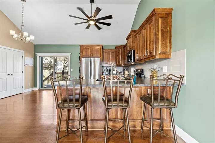 +"PublicRemarks": "7 year new home with fresh interior paint. 4 bedrooms & 3 Full baths. The Great room, Kitchen with bar seating & the Dining are are all open with beautiful hardwood floors, granite, vaulted ceilings & a cozy fireplace. Great primary suite has a walk in shower, jetted tub, double vanity & walk in closet. Bedrooms 2 & 3 are also on main level. Main level laundry. The lower level has a nice family room & the 4th bedroom that is a second primary suite with a walk in shower, double vanity & walk in closet. This home has solar panels that are paid off with VERY low electric bills! There is also a Generac whole house generator! The back yard is privacy fenced with a deck, a newer patio & pretty mature trees. Lots of windows & natural light throughout, even the lower level. This home is in the approved area for the USDA zero down loan. Professional photos & more info will be added 2/11."