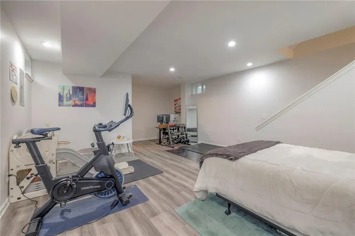 "LongDescription" => "Full bathroom featuring a spacious closet, double vanity, recessed lighting, and dark tile patterned floors"