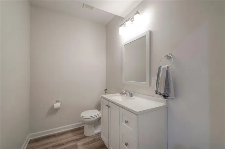 "LongDescription" => "Bathroom with vanity and dark wood finished floors"