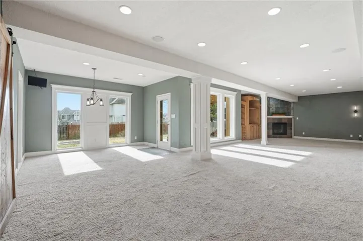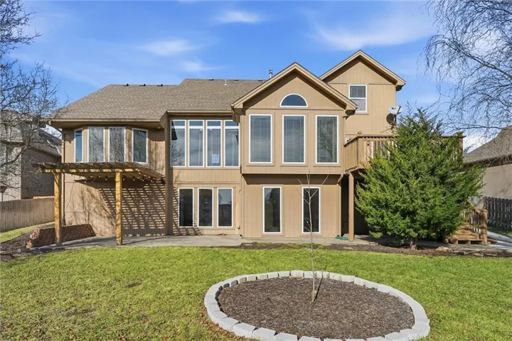 Spacious with lots of upgrades! This 5-bedroom home in Kansas City offers over 4500 square feet with a desirable 1.5 story layout. The large primary suite on the main floor features 2 walk-in closets, large tiled shower, and a tub with a fireplace. In addition to the 3 bedrooms upstairs, there is a separate loft area that would be great for a bonus living room or study area. The finished basement features a large custom bar with appliances and tons of space to entertain. The basement has so much potential as a separate living space, including a bathroom and 5th bedroom walking out to the backyard. Great outdoor space with large patio, pergola and provide so many spaces for entertaining, and a private sidewalk from the side of the house to the backyard. This home also features a 3-car garage and plenty of shelves for storage in the unfinished portion of the basement. HVAC is dual zoned for improved efficiency. \r\n