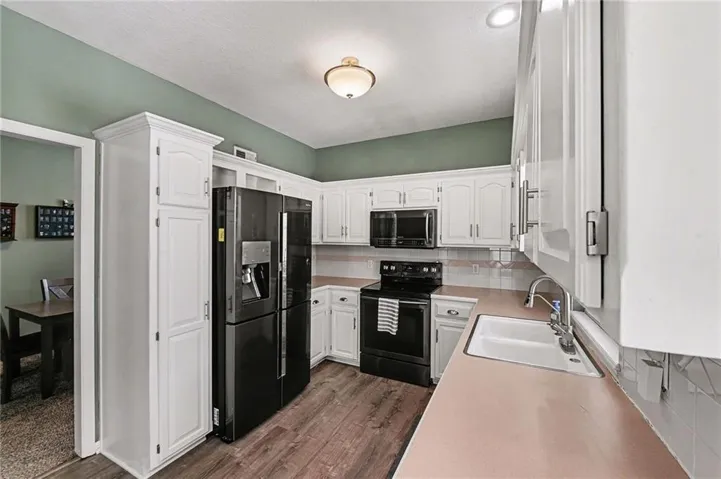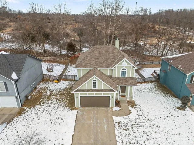 Featuring 3 bedrooms and 2.5 bathrooms, this home offers a functional and inviting layout with 1,910 square feet of living space. The main level includes a comfortable living room with a fireplace, perfect for relaxing or entertaining, along with an eat-in kitchen and breakfast nook that flows easily into the formal dining area. Upstairs, the primary suite provides a private retreat with a walk-in closet and en-suite bath, while two additional bedrooms offer flexibility for guests, a home office, or everyday living. The home sits on a spacious city lot backing to mature trees, offering added privacy and a peaceful backdrop. Enjoy outdoor living on the deck and patio, ideal for summer evenings or weekend gatherings. Additional highlights include a two-car attached garage, basement for storage or future finishing, vaulted ceilings, wood, tile, and carpet flooring, and a full suite of appliances including stainless steel options. Conveniently located near major highways, shopping, and schools within the Platte County R-III School District, this home combines comfort, location, and value at an attractive price point.\r\n