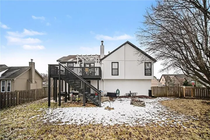 +"PublicRemarks": "Welcome to your dream home in the highly sought-after Sterling Hills subdivision of Lee’s Summit just minutes from West Pryor Shopping Plaza. \u{A0}This beautifully updated 3-bedroom, 2.5-bath front-to-back split offers a perfect blend of modern sophistication and cozy charm. Upon entering, you are greeted by a spacious living room boasting soaring vaulted ceilings and plush carpet, creating an airy and inviting atmosphere. The heart of the home is the stunning kitchen and dining combo, featuring a showstopping floor-to-ceiling ceramic tile fireplace that allows for cozy fireside meals. The spacious kitchen provides a kitchen island complete with formica countertops, a classic subway tile backsplash, modern lighting, and stainless steel appliances, all set against beautiful hardwood floors that lead out to the expanded deck which is perfect\u{A0}for entertaining. The primary suite serves as a true escape, offering tray ceiling for recessed lighting and a luxurious ensuite with a double vanity, large closet, expanded shower with\u{A0}floor\u{A0}to ceiling custom ceramic tile and rainforest shower head. Both the hall bath and the lower-level half bath have been completely updated with modern vanities; designer tile, and the hall bath features a deep soaker tub with shower. For those who love to entertain, the finished walk-out family room provides ample space for gatherings and leads directly to the patio. Car enthusiasts and hobbyists will appreciate the oversized 3-car garage, finished with durable sprayed epoxy floors and modern lighting. Situated on a cul de-sac, the fenced in backyard is an ideal oasis for kids and pets alike. Additional upgrades\u{A0}include NEW HVAC, reverse osmosis water and a whole house water softener. \u{A0}More upgrades can be found in the supplements. This move-in-ready gem won’t last long—schedule your private showing today!"