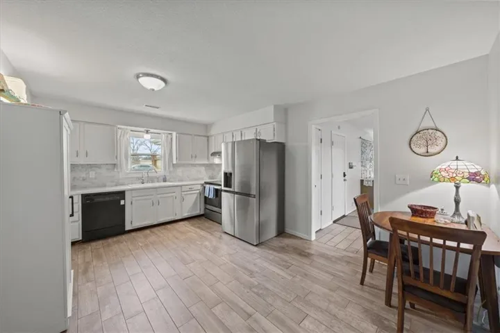 +"PublicRemarks": "Super cute ranch home! The exterior has been freshly painted with cedar accents added to create adorable curb appeal. There is plenty of room to entertain with two living areas and an updated eat-in kitchen. This home has a nice primary suite, which is almost impossible to find at this price. The flex family room features a fireplace and also makes for a great hearth dining room. A sliding door leads to a covered patio overlooking the large fenced yard with an additional shed for storage. Roof and gutters were replaced in 2024, and windows were replaced in 2021. This home is close to The Crossing at KU, bus stops, shopping, trails, and everything Lawrence has to offer!"