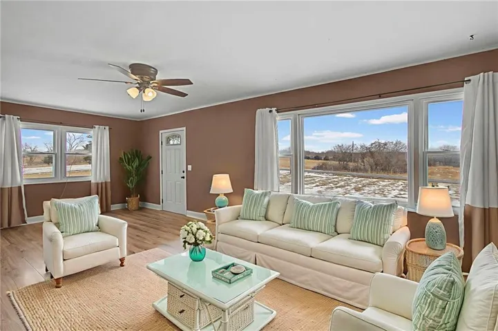 Multiple offers received. Offer deadline of Tuesday, Feb. 10th by 5 p.m..Enjoy peaceful country living on five beautiful, secluded acres — all while being located on a paved road and less than an hour from Kansas City! This charming two-bedroom home offers comfortable main-level living with a spacious primary bedroom, main level laundry and a basement for extra storage or future living space. Recent updates include a new roof, new HVAC system, decking and more. The land is perfect, offering privacy, scenic views with a pond, and plenty of room to enjoy the outdoors. A rare opportunity to own a private retreat with modern improvements and easy access to the city!\r\n
