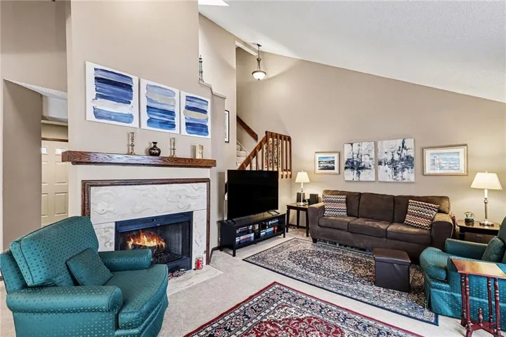 +"PublicRemarks": "Highly desirable Mission Lakes property available and ready for first-time buyers, downsizers, buyers seeking low maintenance or just easy living with excellent amenities! Private entrance to the front door, enter to a designated entryway and coat closet, open living room with fireplace and large windows to allow natural light in. Dining room open to kitchen. Updated with fresh cabinets, paint, new countertops, stainless appliances and charming window over the sink. Pantry, laundry room and powder room on the main level. Two generous sized bedrooms upstairs with vaulted ceiling in primary and Juliet window to living area below. Double closets in the primary. Bonus space off the primary functions as workout, office, play, nursery or guest space! Attached, oversized garage for easy parking and storage space. The HOA covers building exterior, roof, water, lawn care, snow removal, curbside recycling, and trash pickup, making everyday living effortless. Community amenities include two swimming pools, a clubhouse, walking trail around the lake and an exercise room. Ideally located just minutes from Red Bridge Shopping Center, Martin City’s popular restaurants and breweries, parks, golf courses, and quick highway access. Mission Lake offers the perfect blend of suburban tranquility and urban convenience. This is one you won’t want to miss! Lower HOA for everything offered!"