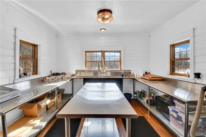 +"PublicRemarks": "Discover Sycamore Ridge, a magnificent 51+ acre private estate just a short drive from Loch Lloyd and the Kansas City metro. The custom-built log cabin home boasts warm, inviting interiors with soaring vaulted ceilings, exposed beams, a dramatic stone fireplace, and flexible open-concept spaces currently configured as an upscale event venue — yet perfectly suited for conversion back into a luxurious 1.5 Story single-family residence. Imagine waking up to panoramic views from the expansive wraparound porches, enjoying morning coffee overlooking the private creek and wooded ridges, or hosting family holidays in the grand lofted great room. The walkout basement (currently the bridal suite) easily becomes a spacious Family Room and/or additional bedroom, while additional restrooms, prep kitchen, and storage areas can be repurposed for everyday family living or gourmet entertaining. Outside, the large stamped concrete patio strung with lights provides an ideal setting for outdoor dining, a future pool, or simply relaxing by the water. The acreage has ample room for barns, trails, horses, or additional homes, this property offers unmatched privacy and flexibility — whether as a serene forever home, family compound, or legacy estate with optional event-income upside. Rarely does a property this size and this finished come available so close to the city. Buyer & Buyer's Agent to verify all information including square footage, zoning, taxes & room sizes during the Inspection Period."