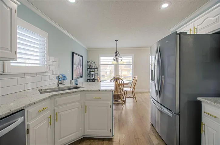 +"PublicRemarks": "Don't miss the virtual tour and consider taking a closer look online before this home becomes active. Homes in this price range, condition, and location rarely come along. This single-owner home was professionally remodeled and decorated in 2021-2022 and has been lovingly maintained ever since. Offering 3 bedrooms, 2.5 baths, a 2-car garage, and over 1,600 sq ft, this move-in ready home is a perfect fit for first-time buyers or anyone looking for comfort, space, and easy living. The bright kitchen features granite countertops, stainless steel appliances, white cabinetry with updated hardware, and a classic subway tile backsplash. The peninsula offers additional prep space and opens to the dining area, where large windows bring in natural light and flow into the great room. Plantation shutters and durable Pergo luxury vinyl wood-look flooring run throughout the home (staircase excluded), providing a stylish, low-maintenance, pet-friendly surface. The inviting great room features a cozy fireplace, creating a warm space to relax or gather. Upstairs, the primary suite features a vaulted ceiling, generous space, a walk-in closet with built-ins, and an updated private bath with double sinks and decorator tile. Two additional bedrooms, laundry, and a second full bath provide flexible space for family, guests, or a home office. The unfinished lower level is already stubbed for a bathroom and offers excellent storage, giving you room to expand. Step outside to a welcoming patio overlooking the level backyard, offering a great space to relax or entertain, with partial fencing and a sprinkler system for easy maintenance. Buy with confidence--this home has been pre-inspected and the seller is providing a home warranty for added peace of mind. Conveniently located in the award-winning Blue Valley School District near Highway 69, shopping and dining at Bluhawk, parks, and everyday amenities, this is the one! Welcome home!"