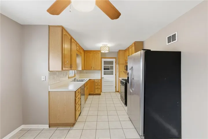 Update Kitchen with island! Large Patio ! Oversize shed ! Formal Dining with unique sliding door to main floor bedroom! Large entry foyer ! Fireplace is gas stove in Living Room !Stainless Steel appliances- no warranty on refrigerator! Corner\r\n