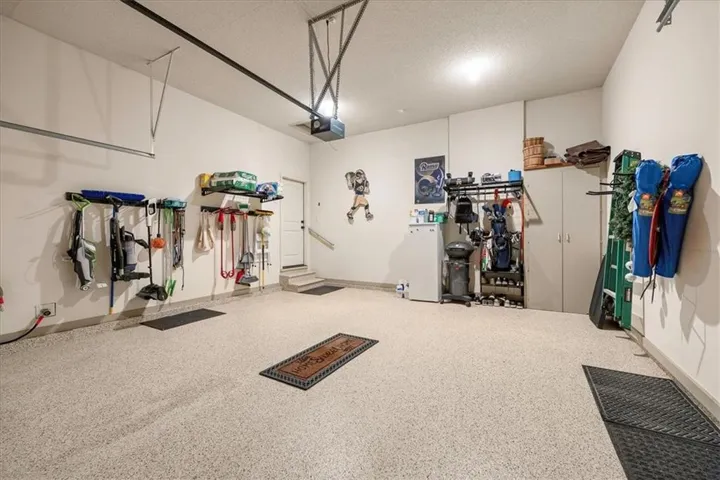 Additional highlights include beautiful carpeting throughout, epoxy-coated garage floors, and built-in shelving in the garage, adding both functionality and a polished finish. Enjoy low-maintenance living paired with luxury details in one of Olathe’s desirable 55+ communities.