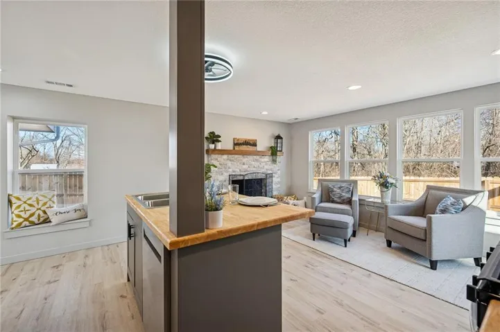 HOME Sweet HOME...Welcome to Your Freshly Renovated Beauty! @1,700 sqft of this exquisitely remodeled residence nestled in a quiet, established neighborhood, offering refined finishes and exceptional privacy. Backing to wooded greenspace, this move-in-ready home has been thoughtfully redesigned from top to bottom with all New Everything! Would be easier to state what hasn't been updated, but here we go...NEW plumbing, electrical, ductwork, roof, gutters, framing, doors, flooring, windows, fixtures, appliances, and siding to name a few updates - delivering both style and peace of mind. Pride of Craftmanship is boasted throughout! Fresh paint inside and out! Neutral colors throughout this light-filled main living area that features warm wood floors and an open, inviting layout ideal for both everyday living and entertaining. The chef-inspired kitchen showcases custom wood cabinetry, a generous center island, wood countertops, gas range, and stainless steal appliances, with a convenient laundry room just off the kitchen. The master suite is a true retreat, complete with wood flooring, a spacious walk-in closet, and a master bath featuring a double vanity, and a beautifully tiled shower. Secondary bedrooms offer wood floors, ceiling fans, and ample closet space. Both full bathrooms have been fully updated with elegant tile, modern vanities, and upscale fixtures. Lower level has expanded the living space with a large hearth room hosting a fireplace, rich wood flooring, large sunlight windows and walkout access-perfect for hosting or relaxing. Outdoor living is elevated with a stone paver patio and new wood pergola overlooking a fully fenced backyard with tranquil wooded views. Private & serene setting, Relax! Lot also has a huge front yard!\r\n