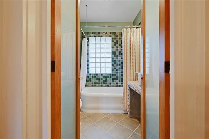 "LongDescription" => "Bathroom with vanity, a tub with jets, a stall shower, and light tile patterned floors"