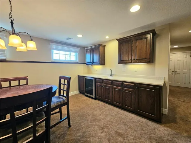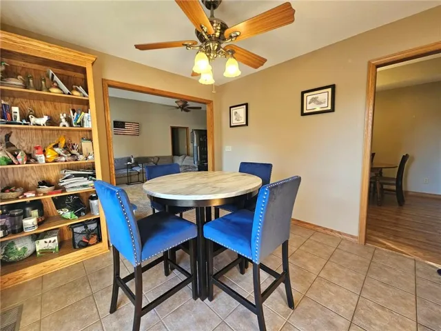 Wonderfully cared for five-bedroom, three-bath ranch home with a full basement featuring egress windows and a dedicated storm room. This home offers a variety of thoughtful storage solutions and architecturally interesting details throughout. The main level includes a tiled entryway, an expansive living room with a gas log fireplace, a formal dining room with wood-look flooring, and a tiled country kitchen with custom cabinetry and a breakfast nook. The breakfast nook features custom-built-in shelving and a sliding door leading to the deck. A laundry room with additional storage is located just off the kitchen and provides convenient access to the attached garage. The primary suite offers a tray ceiling, a walk-in closet, a jetted tub, and a separate oversized shower with seating. Two additional main-level bedrooms are generously sized, with one featuring an arched window and a vaulted ceiling. The basement is an entertainer's dream, featuring egress windows, two bedrooms, each with a walk-in closet, a family room with another gas log fireplace flanked by built-ins, an adjacent recreation room with a wet bar, and a convenient bathroom. Unfinished basement spaces include mechanical systems, including a radon mitigation system with a warranty, a new water heater, PEX plumbing, additional storage, and a storm room to provide peace of mind.\r\n
