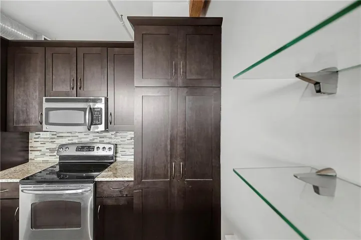 Luxuriously renovated condo in the heart of KC’s historic Garment District, blending modern style with timeless character. The open layout showcases soaring ceilings, exposed brick, hardwood floors, and rustic beams. The kitchen features custom cabinetry, counter seating, granite countertops, and a full suite of stainless steel appliances. The newly renovated bathroom is designed to impress with a bidet toilet, walk-in shower, custom tile, and a spacious walk-in closet. A combined washer and dryer are also included. West-facing windows fill the space with beautiful natural light and capture stunning sunset views.\r\n