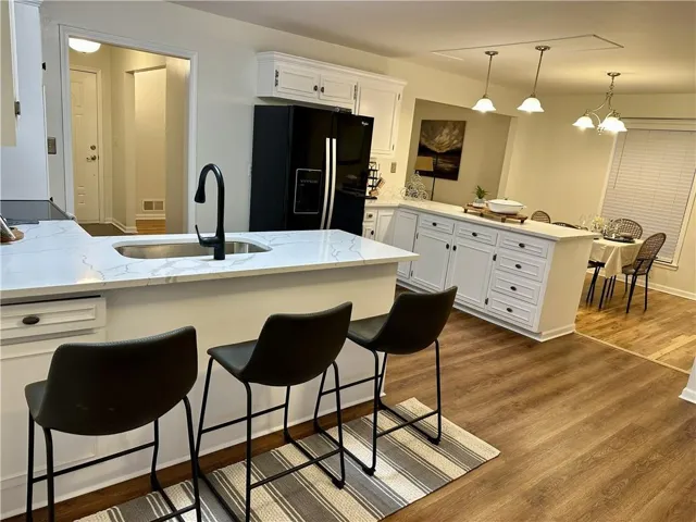 The inviting kitchen blends style and function with gleaming quartz countertops, a large breakfast bar, stainless steel appliances, and luxury vinyl plank floors. French doors flow out to a spacious covered deck with dual fans—perfect for backyard dinners, morning coffee, or watching the sunset over your fully fenced, flat yard.\r\n