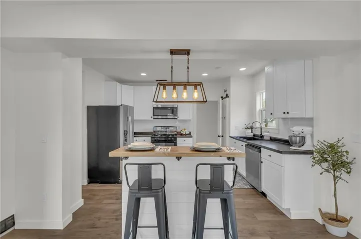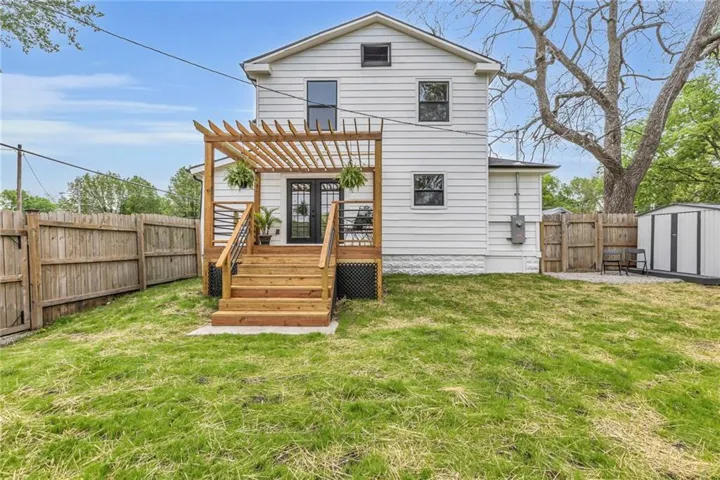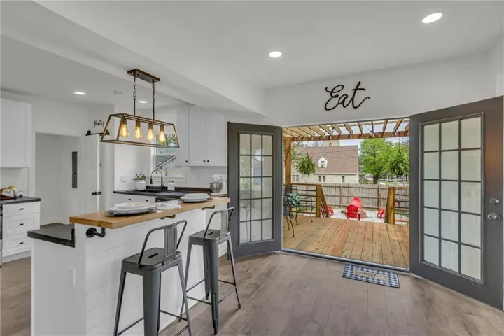 +"PublicRemarks": "Check out this 3 bed, 1½ bath industrial farmhouse, where turn of the century style meets modern day improvements. This charming home located on a corner lot has been completely remodeled. New interior & exterior paint. All new flooring throughout. New windows and HVAC. Kitchen boasts numerous cabinets for your storage needs, island and all new appliances. Master bedroom with walk-in closet. Upstairs bathroom with double vanity. New gutters. Roof is 1 1/2 years old. Open the double french doors to extend your living space to the outdoors. Backyard is complete with deck, pergola, firepit, shed and privacy fence. Call today to make this beautifully remodeled home yours!"